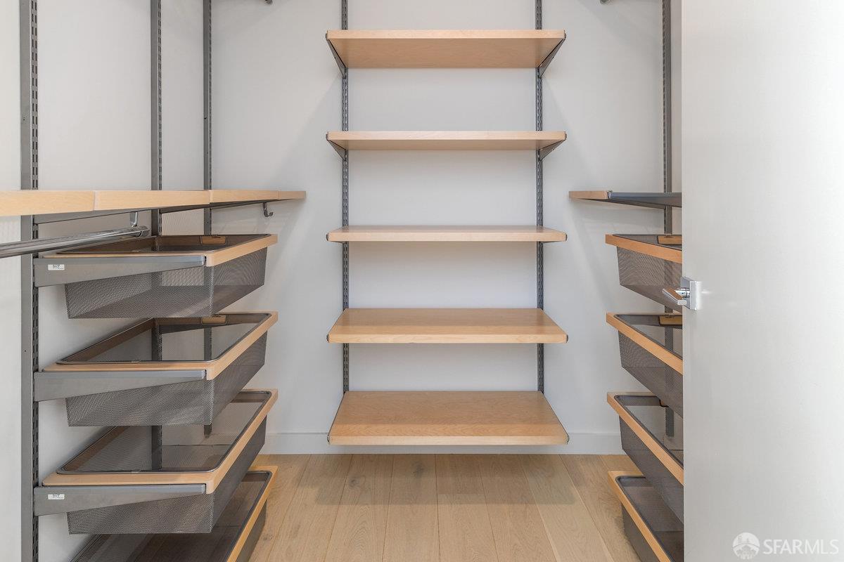 Welcome to Residence 24 at One Stanyan, a striking corner 2-bed, 2-bath condo defined by natural light, refined design, and seamless indoor-outdoor flow. Designed by Sternberg Benjamin Architects, this boutique building sits at the crossroads of Lone Mountain, Jordan Park, and the Inner Richmond, near Laurel Village, Golden Gate Park, and vibrant shops and restaurants on Arguello, Geary, and Balboa. The open-concept living and dining area centers on a modern kitchen with waterfall counter, full-height backsplash, Fisher & Paykel range and fridge, Bosch dishwasher, and undermount sink with premium fixtures. Floor-to-ceiling windows open to a brilliant south-facing patio accessible from both living room and primary suite, perfect for entertaining or relaxing. The spacious primary suite offers a custom walk-in closet and spa-inspired bath with dual floating vanities, soaking tub, and oversized glass shower. A second bedroom enjoys abundant light and a hall bath with rain shower over tub. Additional highlights include LG washer/dryer, independent parking, ButterflyMX entry, elevator, and curated lobby and courtyard. With just 13 homes and a 91 Walk Score, One Stanyan blends boutique luxury with effortless city living.