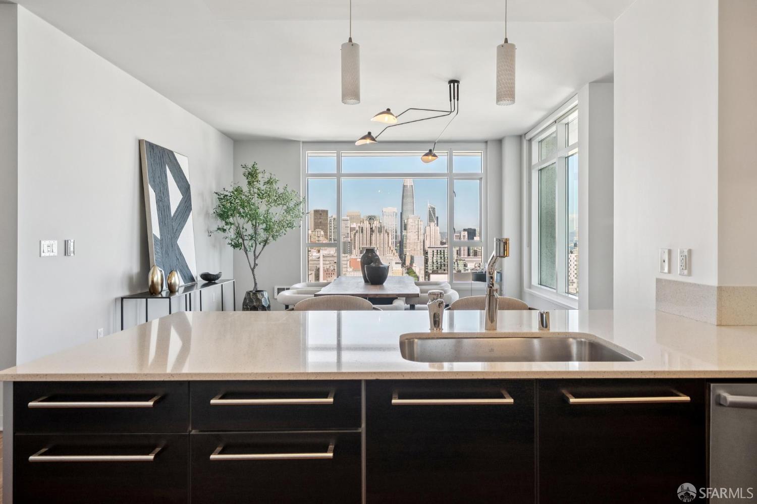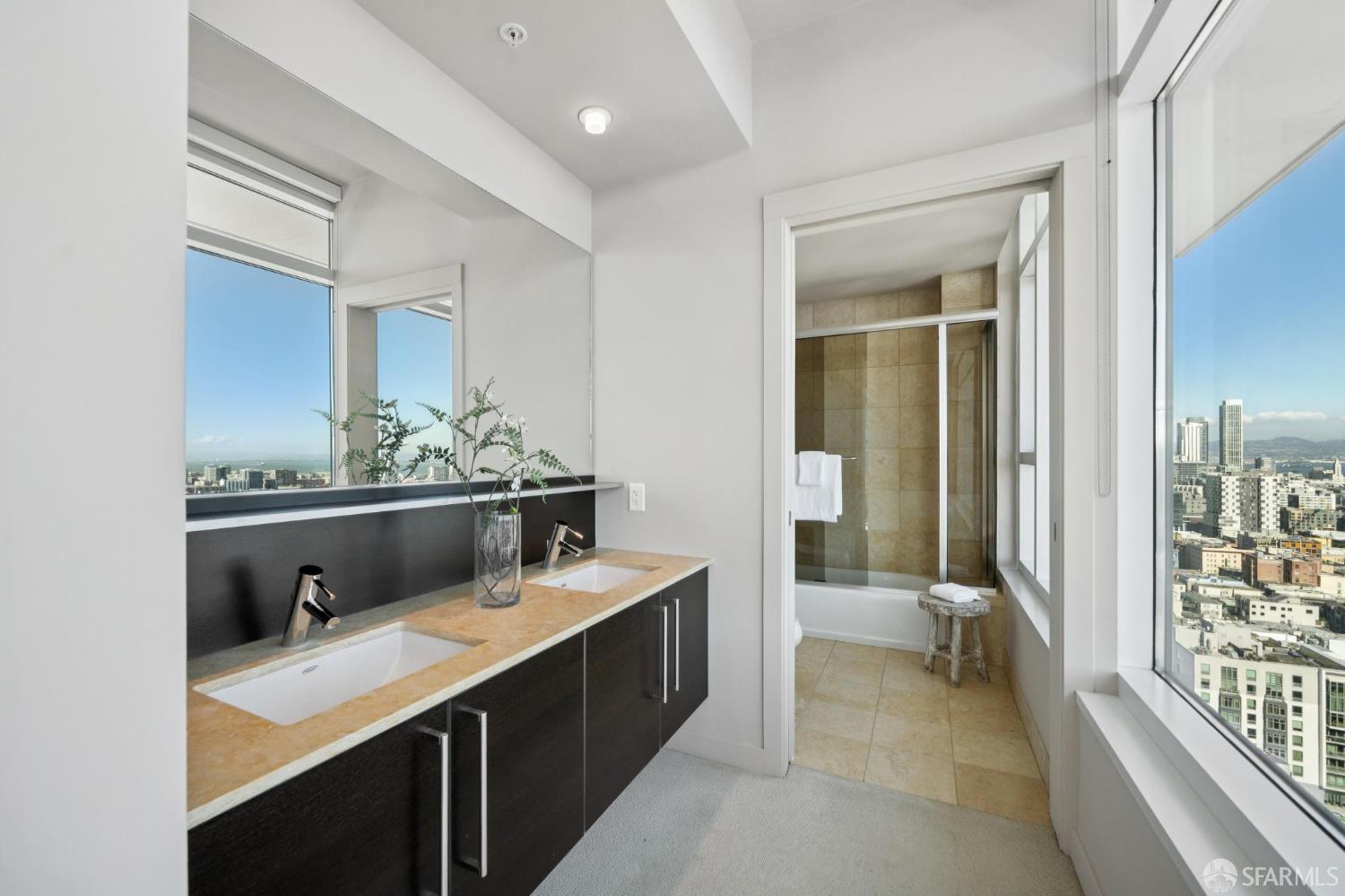 An iconic four-bedroom plus office penthouse showcasing some of SoMa's most breathtaking skyline and water views. Residences #2306 and #2304 have been seamlessly combined to create a spectacular 2,371-square-foot home defined by extraordinary scale and walls of wraparound windows that frame dramatic city and bay vistas from nearly every room. This expansive residence features four spacious bedrooms, three full bathrooms, and a dedicated office have been thoughtfully designed for elevated urban living. Three of the bedrooms occupy prime corner positions with sweeping wraparound windows, immersing each space in natural light and showcasing a serene yet dynamic city backdrop. From sunrise illuminating the Bay to evenings when the skyline sparkles against the night sky, the panoramic views are truly captivating and uniquely positioned from this exceptional height. The SoMa Grand is a full-service luxury building offering 24-hour concierge, complimentary housekeeping, a state-of-the-art fitness center, spa with hot tub, coffee service, and more. Penthouse #2306 stands apart for its rare scale, functionality, and uninterrupted connection to the sky. Ideally located in the heart of SoMa, just moments from renowned theaters, the vibrant energy of Hayes Valley, and the cultural amenities of the Yerba Buena District. Enjoy easy access to cafes, fine dining, shopping, freeway connections, MUNI lines, and BART. A truly rare opportunity to own one of SoMa's premier penthouse residences.