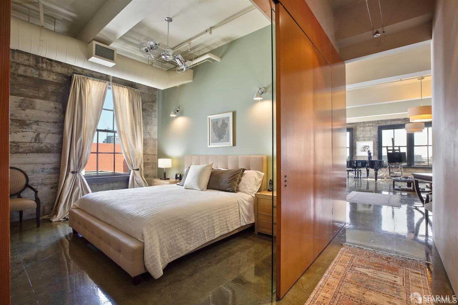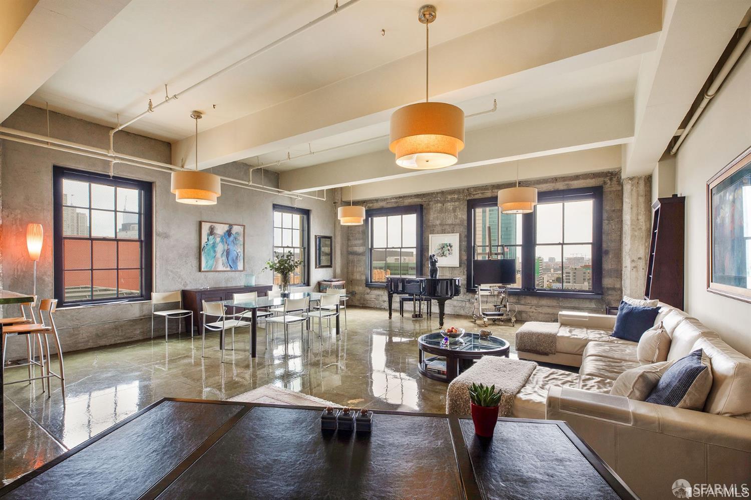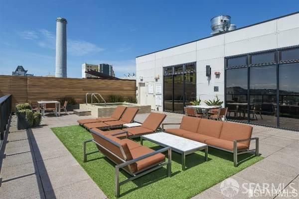 Experience luxury living in this industrial-chic 1-bedroom, 1-bathroom loft at 2 Mint Plaza in the heart of San Francisco's SOMA district. This spacious unit features an open floor plan with polished concrete floors, oversized windows, and modern finishes throughout. The sleek kitchen is equipped with premium stainless steel appliances, while the large windows offer breathtaking city views. The primary bedroom includes a stylish sliding door for privacy, and the building provides amenities like a rooftop deck and 24/7 security. Just steps from SOMA and Union Square's vibrant scene, this loft is perfect for those seeking urban living at its finest.