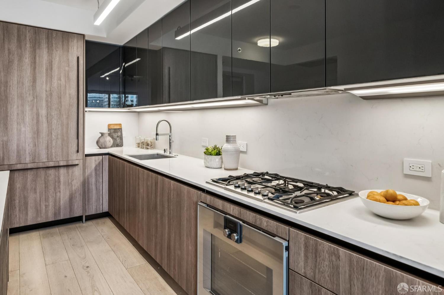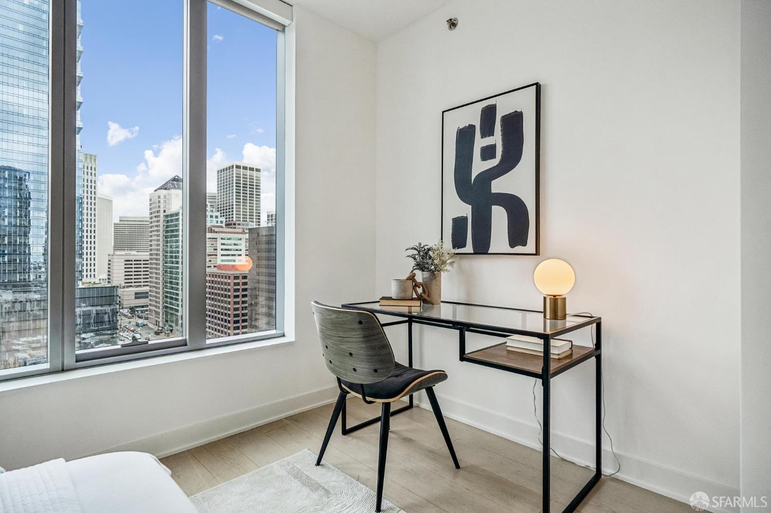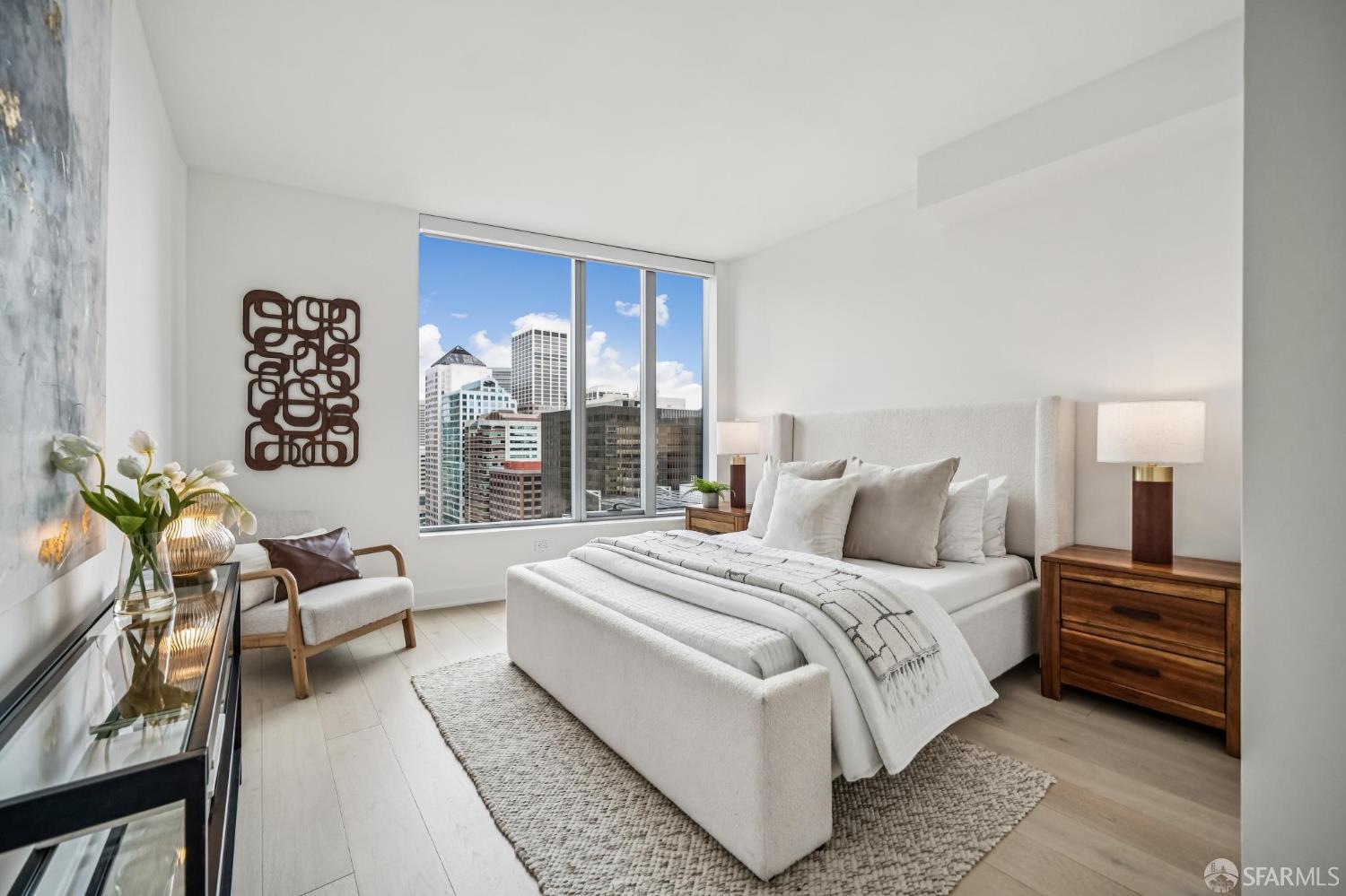 Spacious unobstructed skyline view 2bd/2ba at The Lumina. 21B features a split open floor-plan with wide-oak hardwood flooring, motorized window coverings, Caesarstone Quartz countertops, SieMatic cabinetry, Gaggenau kitchen appliances, in-unit Bosch washer & dryer, and custom closets. The primary bedroom has has a large upgraded walk-in closet, large en-suite bathroom w/ dual vanity sinks and walk-in shower. The guest bedroom is large in size and features two closets, and a office nook. Considered one of the best amenities-focused building on the West Coast, Lumina has over an acre of 5-star facilities incl. a Jay Wright-designed fitness center, spa, 70-ft heated lap pool, bi-level club lounge, private dining room, game room, children's playroom, movie theater, rooftop terrace, & Woodlands Market. Across the street is The Crossing Park, with pickleball courts, basketball hoops, street soccer field, outdoor bar/dining and more. Have the convenience of living on one of the best blocks in South Beach/ East Cut, with shops restaurants, parks and The Embarcadero just steps away.