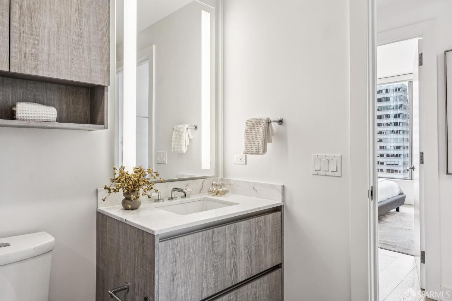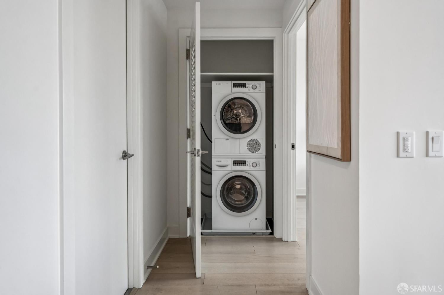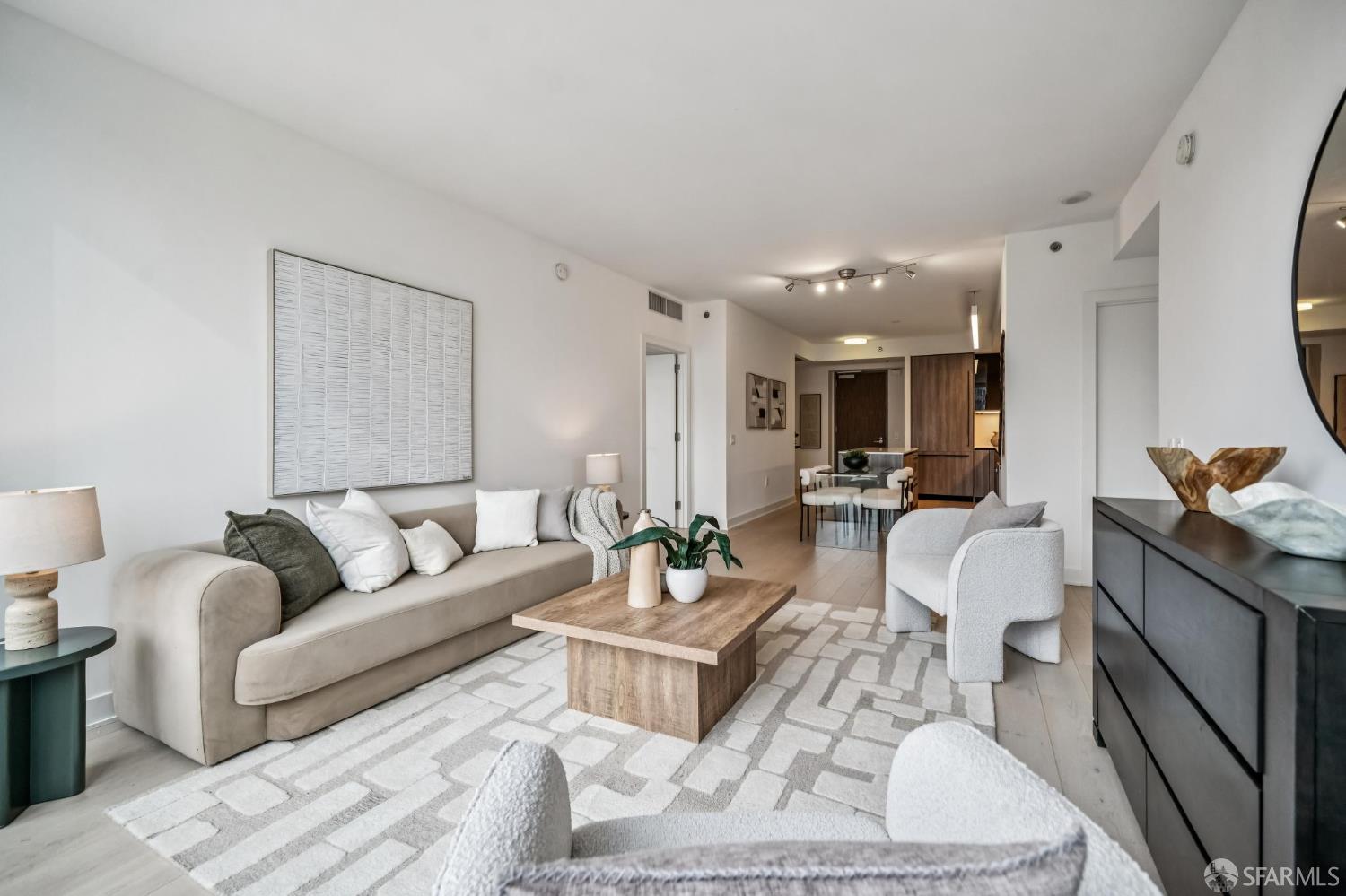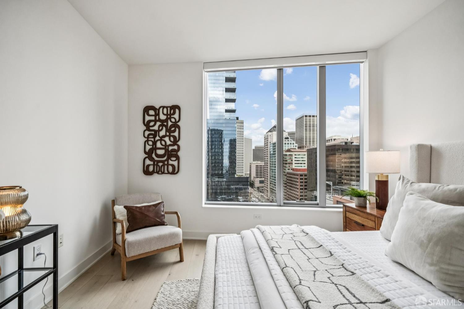 Spacious unobstructed skyline view 2bd/2ba at The Lumina. 21B features a split open floor-plan with wide-oak hardwood flooring, motorized window coverings, Caesarstone Quartz countertops, SieMatic cabinetry, Gaggenau kitchen appliances, in-unit Bosch washer & dryer, and custom closets. The primary bedroom has has a large upgraded walk-in closet, large en-suite bathroom w/ dual vanity sinks and walk-in shower. The guest bedroom is large in size and features two closets, and a office nook. Considered one of the best amenities-focused building on the West Coast, Lumina has over an acre of 5-star facilities incl. a Jay Wright-designed fitness center, spa, 70-ft heated lap pool, bi-level club lounge, private dining room, game room, children's playroom, movie theater, rooftop terrace, & Woodlands Market. Across the street is The Crossing Park, with pickleball courts, basketball hoops, street soccer field, outdoor bar/dining and more. Have the convenience of living on one of the best blocks in South Beach/ East Cut, with shops restaurants, parks and The Embarcadero just steps away.