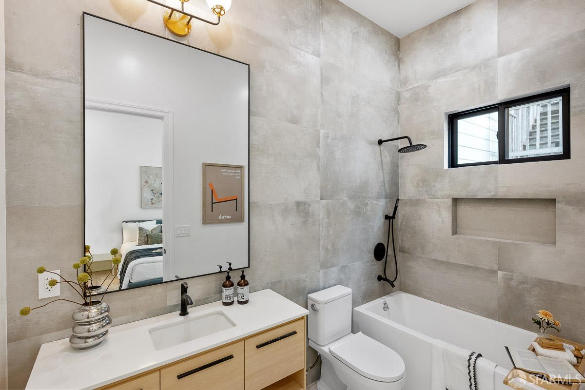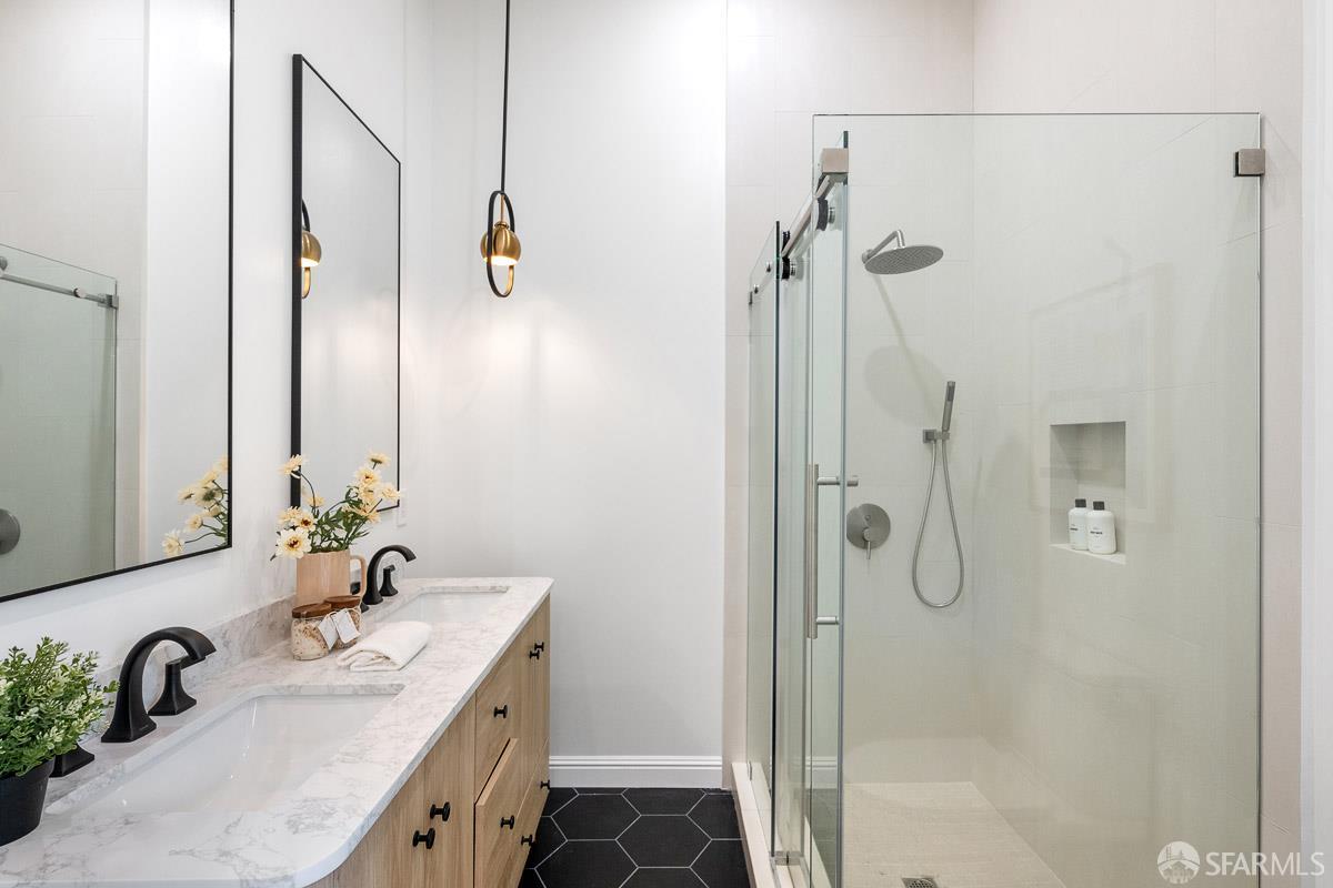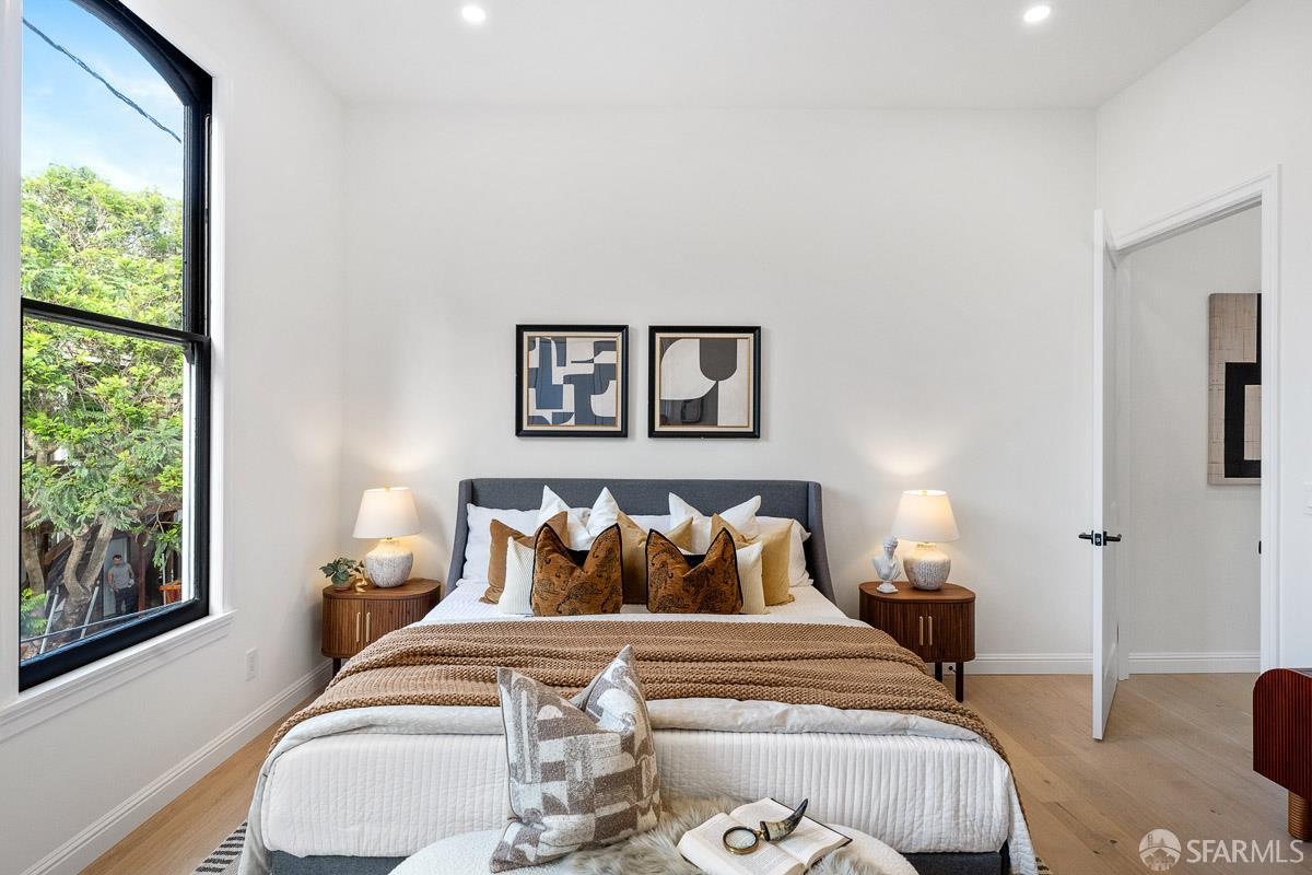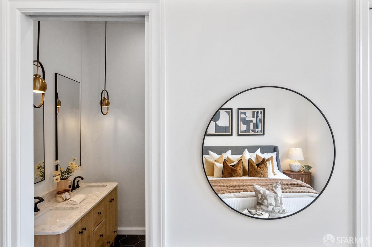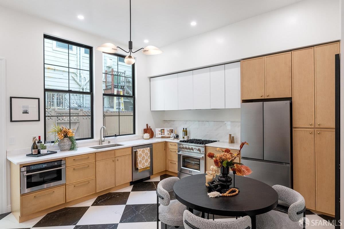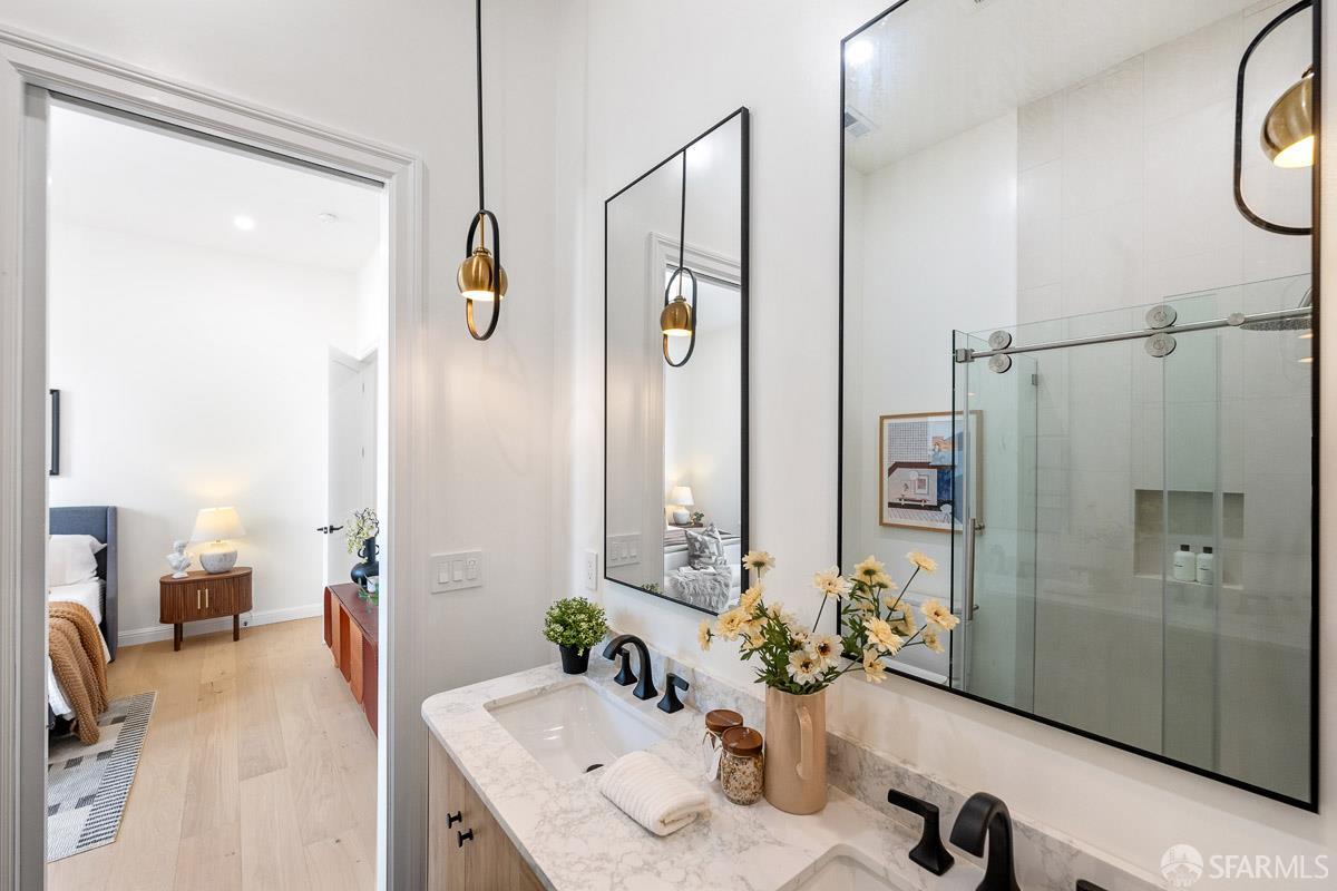 Iconic. Irresistible. Impossible to replicate. The Ivy Residences reimagine a classic Painted Lady for modern living, complete with a rare commissioned Fnnch mural. Renovated down to the studs, this Hayes Valley showpiece blends timeless architecture with cutting-edge design. Inside, soaring ceilings and dramatic front windows highlight period detail, while natural stone counters, custom cabinetry, and a chef-grade Forno gas range anchor the dine-in kitchen. The floor plan flows easily from living room to kitchen to a finished patio for indoor-outdoor living. A chic half bath completes the main level. Upstairs, two suites impress: the south bedroom with spa-style bath and soaking tub, and the grand primary with luminous windows, dual vanities, and a luxe shower retreat. Every detail restored facade, transom windows, Milgard windows, solid-core front door, artisan tilework, and smart appliances have been chosen with intention. In the heart of Hayes Valley, where history meets creativity, The Ivy Residences are a Painted Lady reborn as a modern masterpiece with a splash of Fnnch rizz.