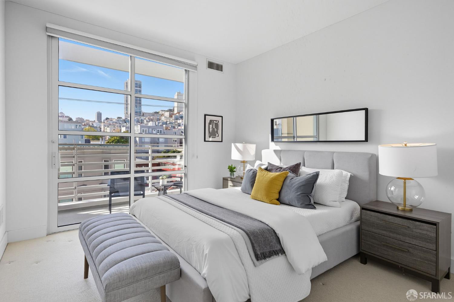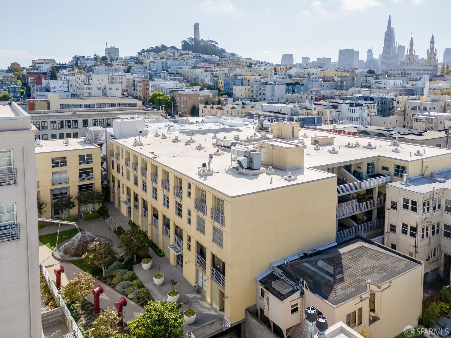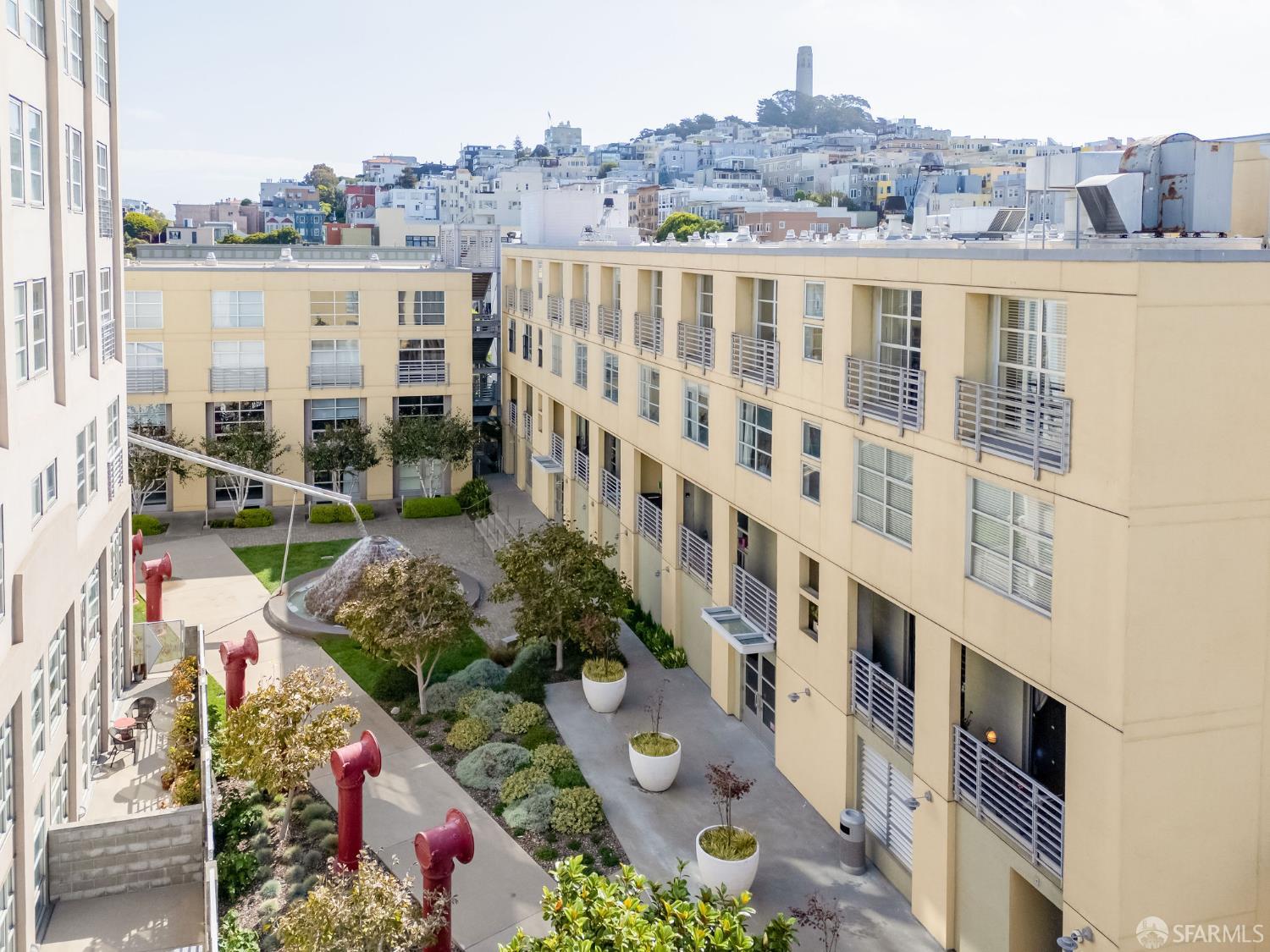 A rare opportunity to own a top-floor view condo in North Beach's coveted Malt House, a landmark building that blends historic charm with modern comfort. This 2BD/2BA residence enjoys sweeping south-facing views & a thoughtfully designed layout, flooded with natural light through oversized windows. The open-concept kitchen seamlessly connects to the dining & living areas, creating an ideal space for entertaining. Both bedrooms are generously sized. The primary suite stands out with dual closets, including a walk-in, a spacious en-suite bathroom, & its own top floor private terrace, 1 of only 2 in the building, offering picture perfect views of Coit Tower, Transamerica Building, Saints Peter & Paul Church, & Russian Hill. Additional highlights include in-unit washer/dryer, a full guest bathroom, assigned parking, & storage. The Historic Malt House was converted into a luxury 88 unit complex, uniquely featuring an internal private park setting in the center of its complex, crowned by two of the factory's original grain silos & a 45-degree-angled flume carrying water to a basalt lava stone fountain. Nearby public transit, Trader Joe's, Washington Square, Joe DiMaggio Playground, North Beach Library & Pool, the waterfront, & iconic dining along Columbus Avenue.