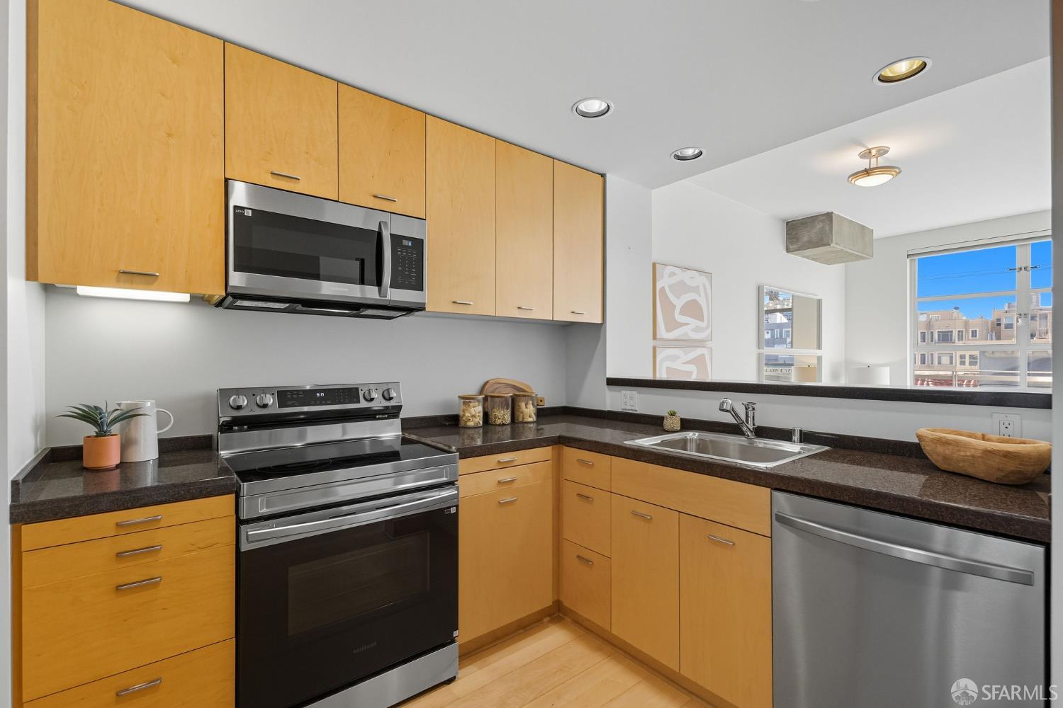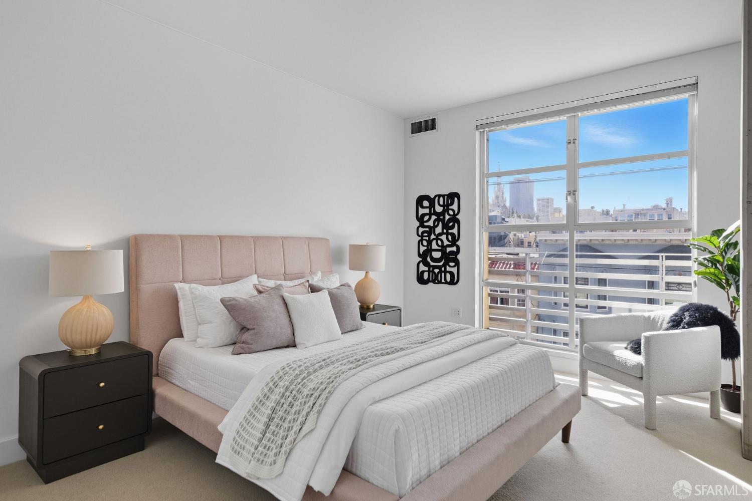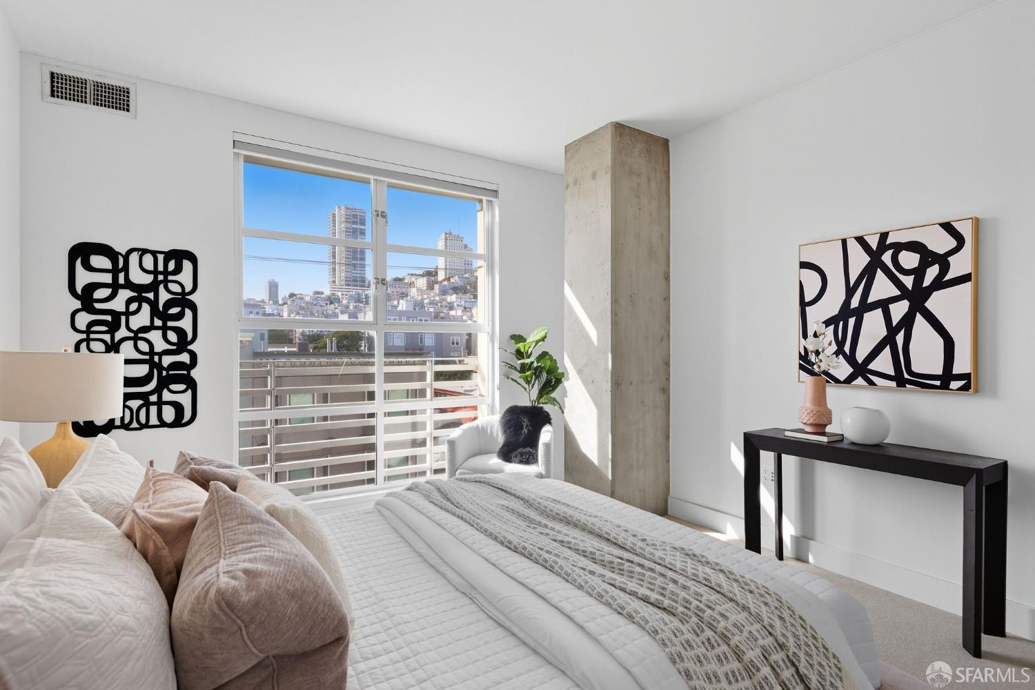 A rare opportunity to own a top-floor view condo in North Beach's coveted Malt House, a landmark building that blends historic charm with modern comfort. This 2BD/2BA residence enjoys sweeping south-facing views & a thoughtfully designed layout, flooded with natural light through oversized windows. The open-concept kitchen seamlessly connects to the dining & living areas, creating an ideal space for entertaining. Both bedrooms are generously sized. The primary suite stands out with dual closets, including a walk-in, a spacious en-suite bathroom, & its own top floor private terrace, 1 of only 2 in the building, offering picture perfect views of Coit Tower, Transamerica Building, Saints Peter & Paul Church, & Russian Hill. Additional highlights include in-unit washer/dryer, a full guest bathroom, assigned parking, & storage. The Historic Malt House was converted into a luxury 88 unit complex, uniquely featuring an internal private park setting in the center of its complex, crowned by two of the factory's original grain silos & a 45-degree-angled flume carrying water to a basalt lava stone fountain. Nearby public transit, Trader Joe's, Washington Square, Joe DiMaggio Playground, North Beach Library & Pool, the waterfront, & iconic dining along Columbus Avenue.