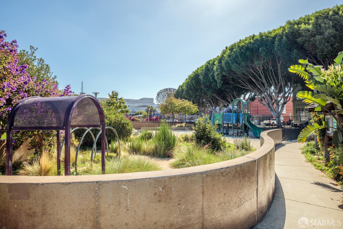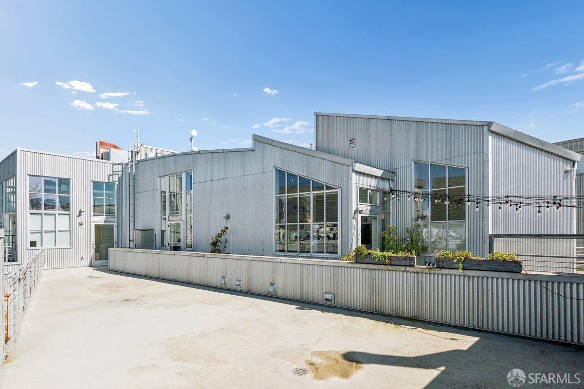 Dynamic top-floor conversion loft with a rare wraparound private terrace and dramatic cityscape outlooks. Residence #410 at the historic Mullen Building offers approximately 1,000 sq ft of interior living space paired with an exceptional 340 sq ft terrace, creating seamless indoor-outdoor living in the heart of SOMA. This bright corner residence features soaring vaulted ceilings, skylight, and an open floor plan filled with natural light. Concrete floors add modern industrial character, while the contemporary kitchen includes stainless steel appliances and natural stone counters. The lofted sleeping area overlooks the living space and is complemented by a versatile den ideal for a guest area or home office with generous storage. A well-appointed bath with dual vanity serves both spaces. Originally converted by noted architect George Hauser, the boutique Mullen Building combines historic industrial architecture with modern loft living near restaurants, cafs, nightlife, transit, and major commuter routes.