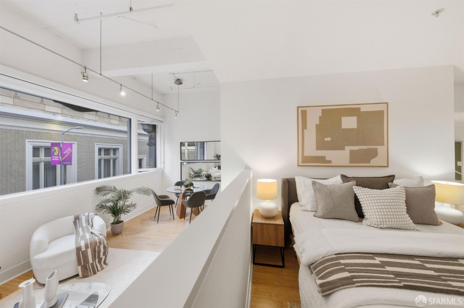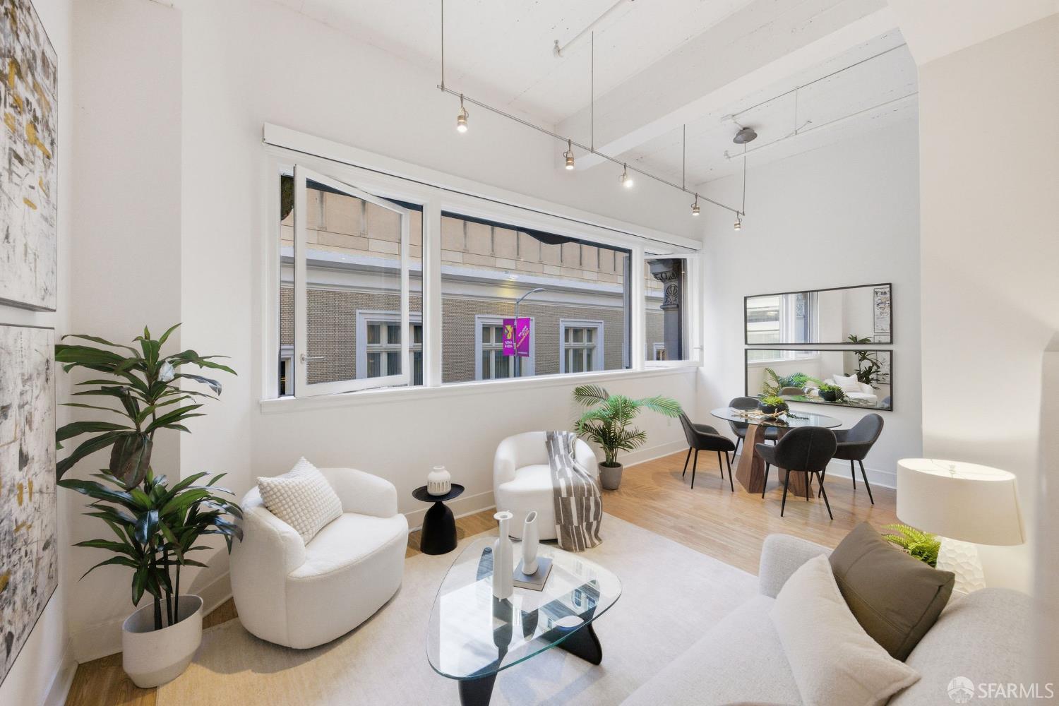 One-of-a-kind one-bedroom residence at The Montgomery showcases soaring 12-foot ceilings and expansive pivoting windows that fill the home with natural light. The well-appointed living and dining areas flow seamlessly into a galley-style gourmet kitchen, while a raised loft bedroom and office nook create the perfect blend of style and functionality. Thoughtful details include a wall of custom closets, a spa-like bathroom, and dedicated storage. Residents enjoy 24-hour security, an expansive roof deck with BBQ area, and convenient bike parking. Perfectly located in the heart of downtown San Francisco next to The Palace Hotel, The Montgomery offers unrivaled access to five-star hotels, world-renowned museums, Michelin-starred restaurants, premier shopping, and public transit. With a Walk Score of 97 and Transit Score of 100, this residence truly captures the best of city living.